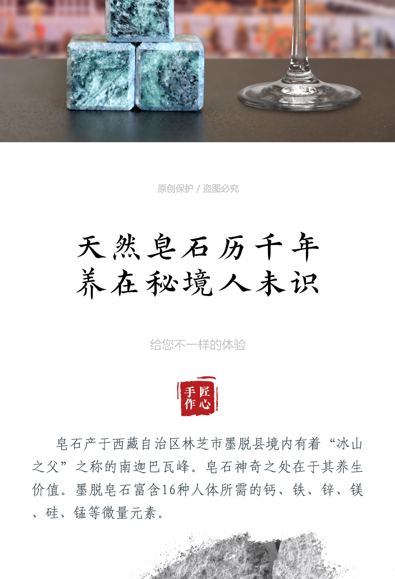 圣地莲花西藏墨脱天然皂石冰酒石家用可循环高档天然冰酒石礼盒装