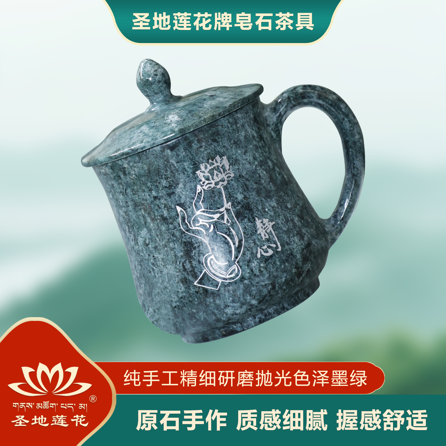 圣地莲花西藏墨脱天然皂石纯手工茶杯石杯办公杯高档泡茶杯礼盒装_吉祥办公杯_圣地莲花墨脱石锅官方网站